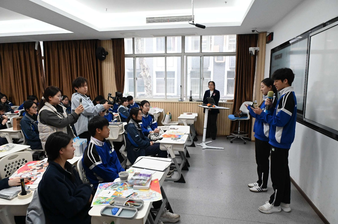 As always, stepping into classrooms was the part students looked forward to most. Our students paired up with buddies at the four schools to attend classes together. Each campus and every lesson offered unique inspiration. Huang Runyao, a Secondary 4 student, shared, "In the STEAM course at Jinling High School, I created a 'wordless plaque' and experienced intangible cultural heritage through enamel craft. It allowed me to experience the educational charm of blending tradition with modernity." These exchanges not only expanded students' knowledge, but also strengthened their cultural confidence.