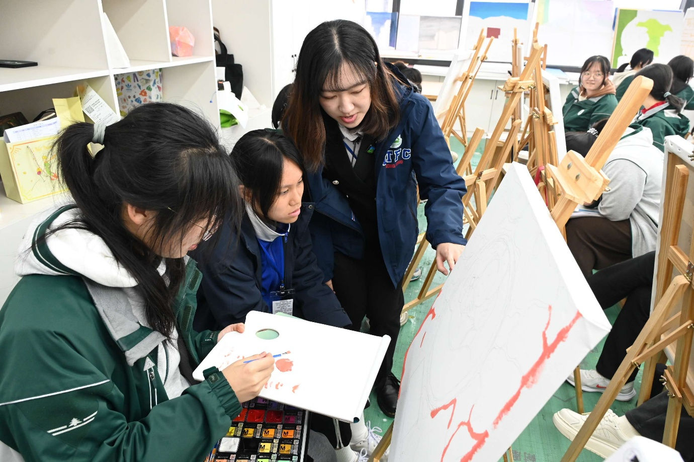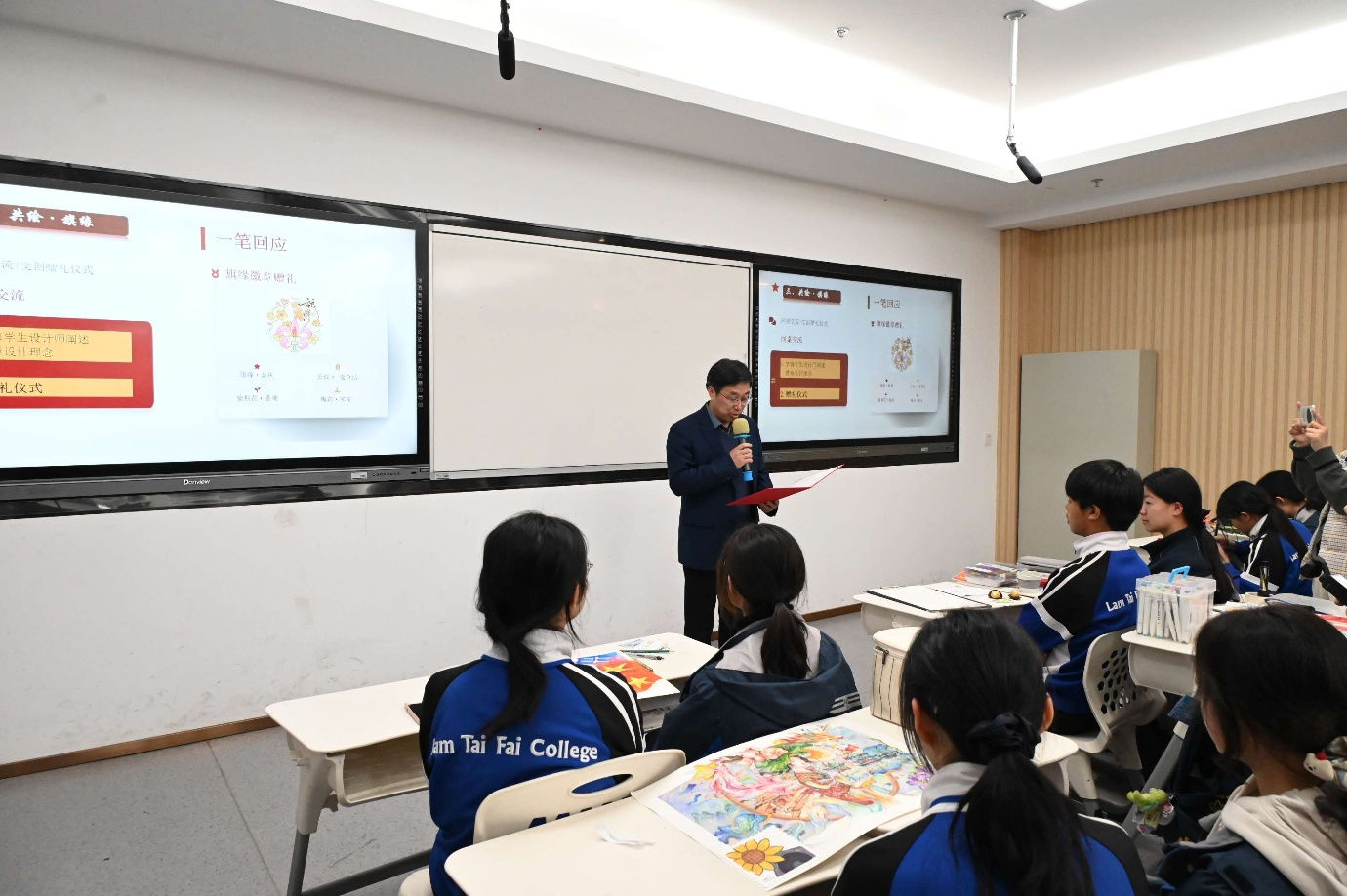 此外,初三級的馮馨逸同學表示:「我被寧海中學濃厚的藝術氛圍深深吸引。校園裡到處都是書畫佳作,同學們在美育的薰陶下,自然流露出優雅的氣質。我明白到學習不只是知識的積累,更是心靈與審美的成長。」在交流過程中,兩地學生在藝術科的老師引導下,「以筆為信,以墨為情」為主題,在方寸郵票間勾勒香港煙火,在共同畫布上凝聚赤子初心,讓家國情懷在筆尖流淌,讓跨越山海的友誼在色彩裡靜靜綻放。在交流的同時,兩地的學生迅速建立了深厚的友誼。