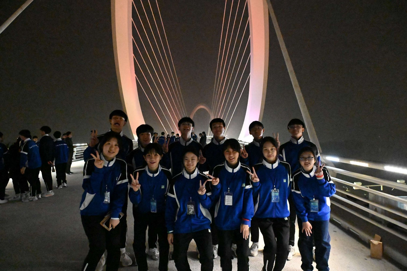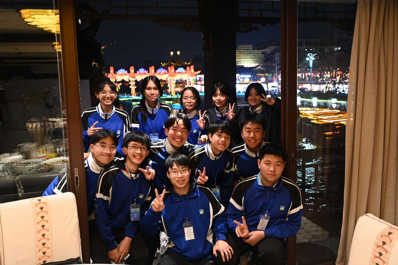其中,夜遊秦淮河更是行程的一大亮點。夜晚的秦淮河畔美景如同畫卷,古老的建築與水面的倒影相映成趣。師生們乘坐畫舫夜遊秦淮河,水中閃爍的水波讓我們仿若置身詩中。難怪詩人鄭燮也贊歎「十里秦淮水,六朝金粉圖」。大家抓住緊機會拍照留念,留下美好的回憶。最後,師生們在南京眼步行橋上漫步,將這座城市的美麗夜景盡收眼底,為行程留下難忘回憶。