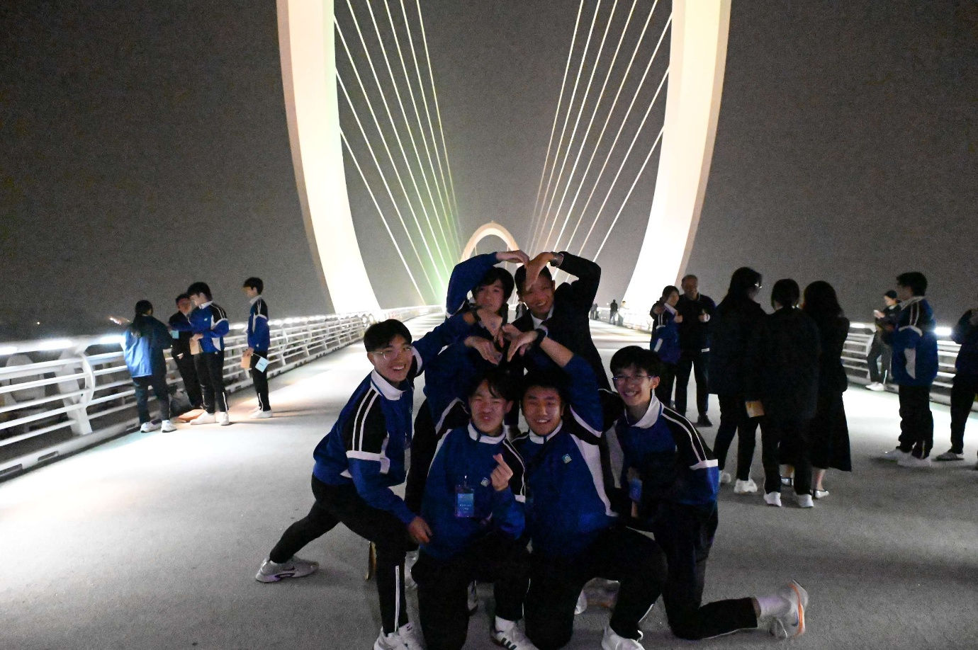 A night cruise on the Qinhuai River was a major highlight. At night, the riverside scenery looked like a painted scroll, with ancient buildings mirrored on the water. Riding a traditional painted boat, shimmering ripples made us feel as if we had entered a poem. No wonder Zheng Xie once praised, "Along ten miles of Qinhuai waters unfolds a tableau of Six Dynasties splendour." Students seized every chance to take photos and preserve these beautiful memories. Finally, we strolled across the Nanjing Eye Pedestrian Bridge, taking in the city's stunning night views, and ending the journey with unforgettable memories.
